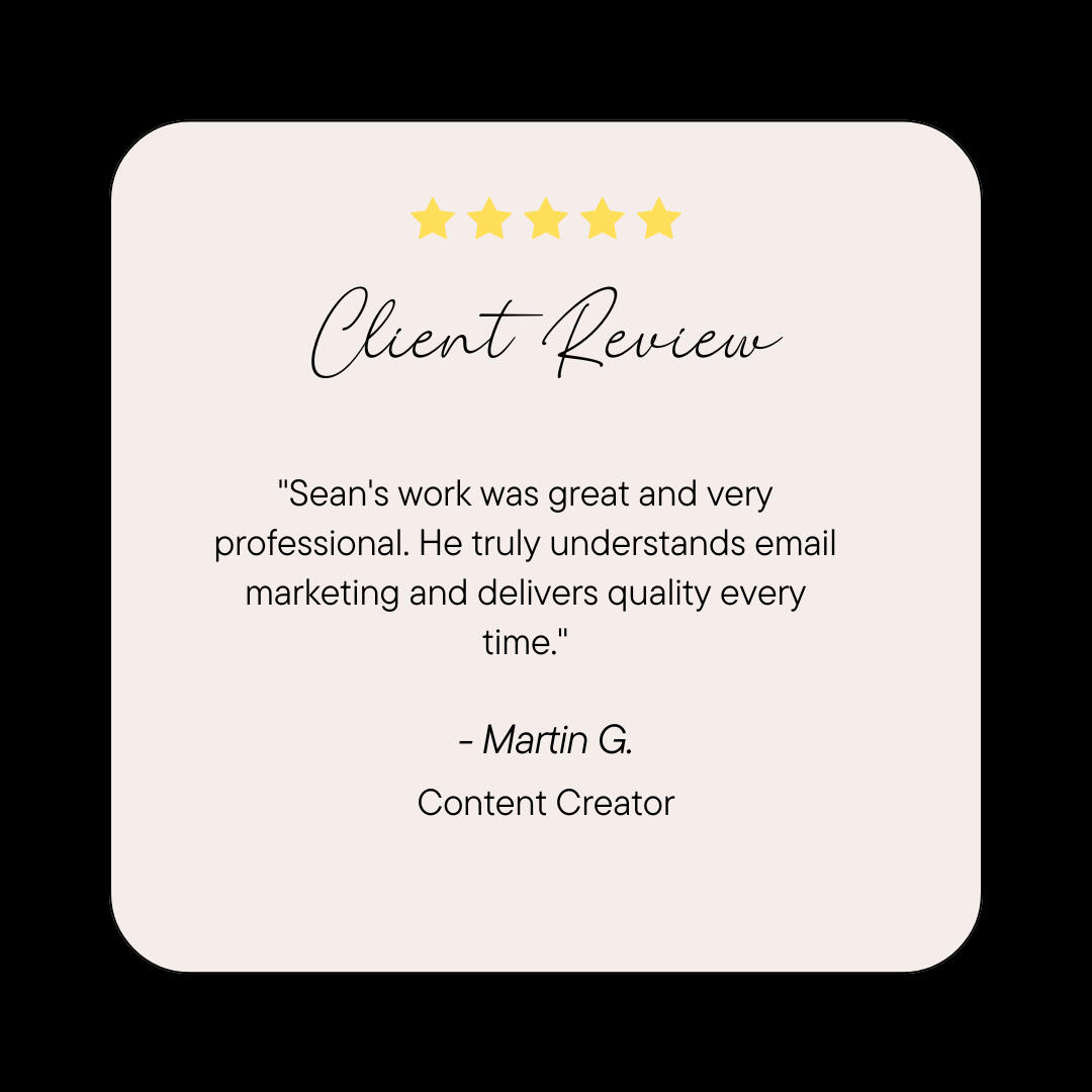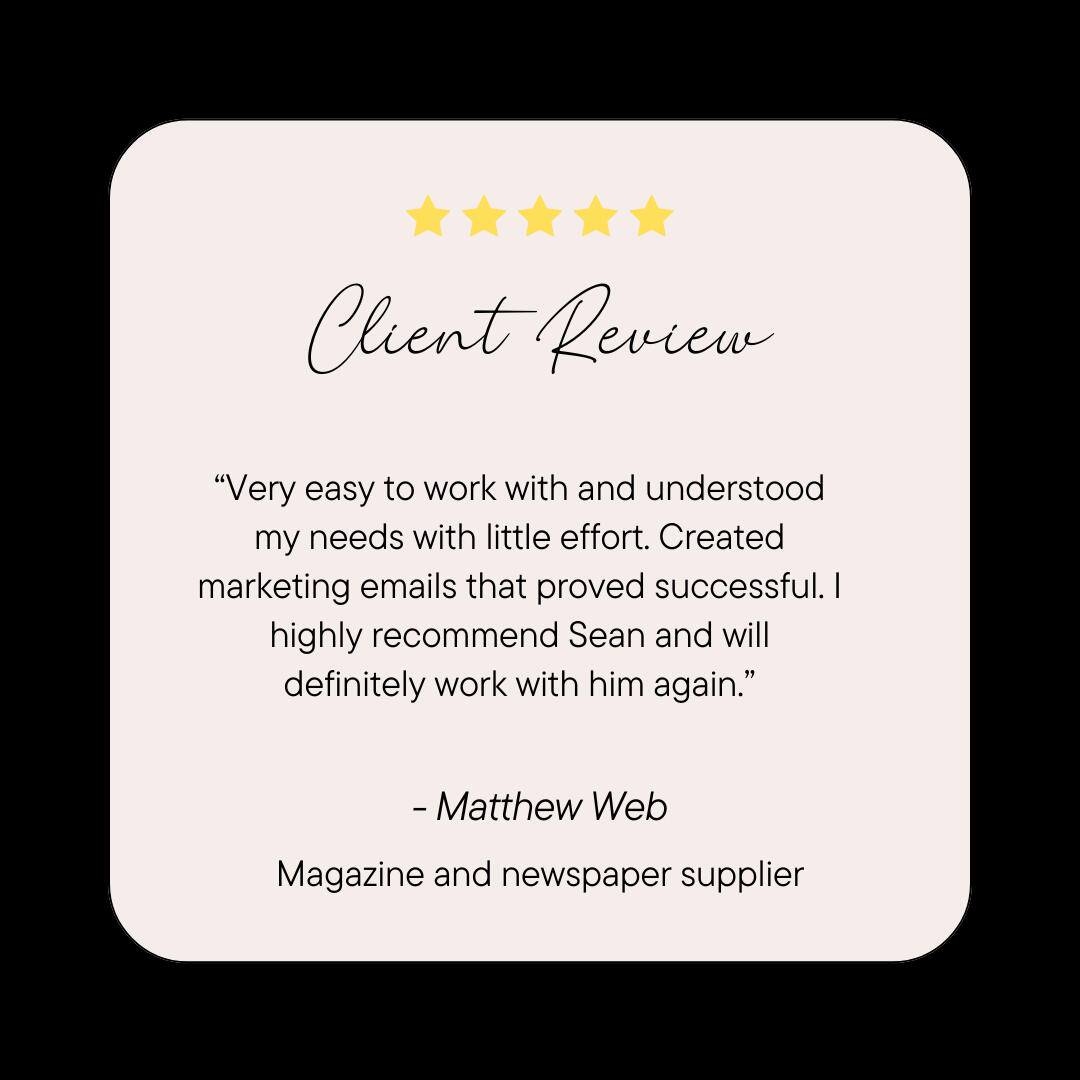 “I operate a company called Breathe Free Movement, and I encountered Sean Services to do a 2.0 version of my website. Now, I had gone through as many different copywriters to create my website. However, I found that they just wrote it in the way that they would write it.After working with Sean for two and a half weeks, we came to an end product, which I was so happy about. Sean puts himself into your shoes. He individually went through all my social media posts to see and feel exactly the message that I was trying to portray to my audience. And what he did was then relay that into the copy of my website.So when I was reading through these pages, it sounded like me. Even how I would portray my message through social media, he’s done it in my website as well, which I thought was phenomenal. And it’s not another copywriter that I’ve come across that does it like this, which makes Sean different from the rest.He’s very responsive. His work ethic is phenomenal. If you come to him with a question, it will be answered within that day, and actioned within that day as well.I would highly recommend Sean for his services. I can tell he puts the absolute heart and soul into the work that he does.”